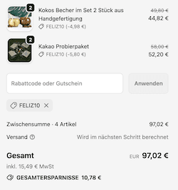 Screenshot des verifizierten Coupons, der angewendet wird